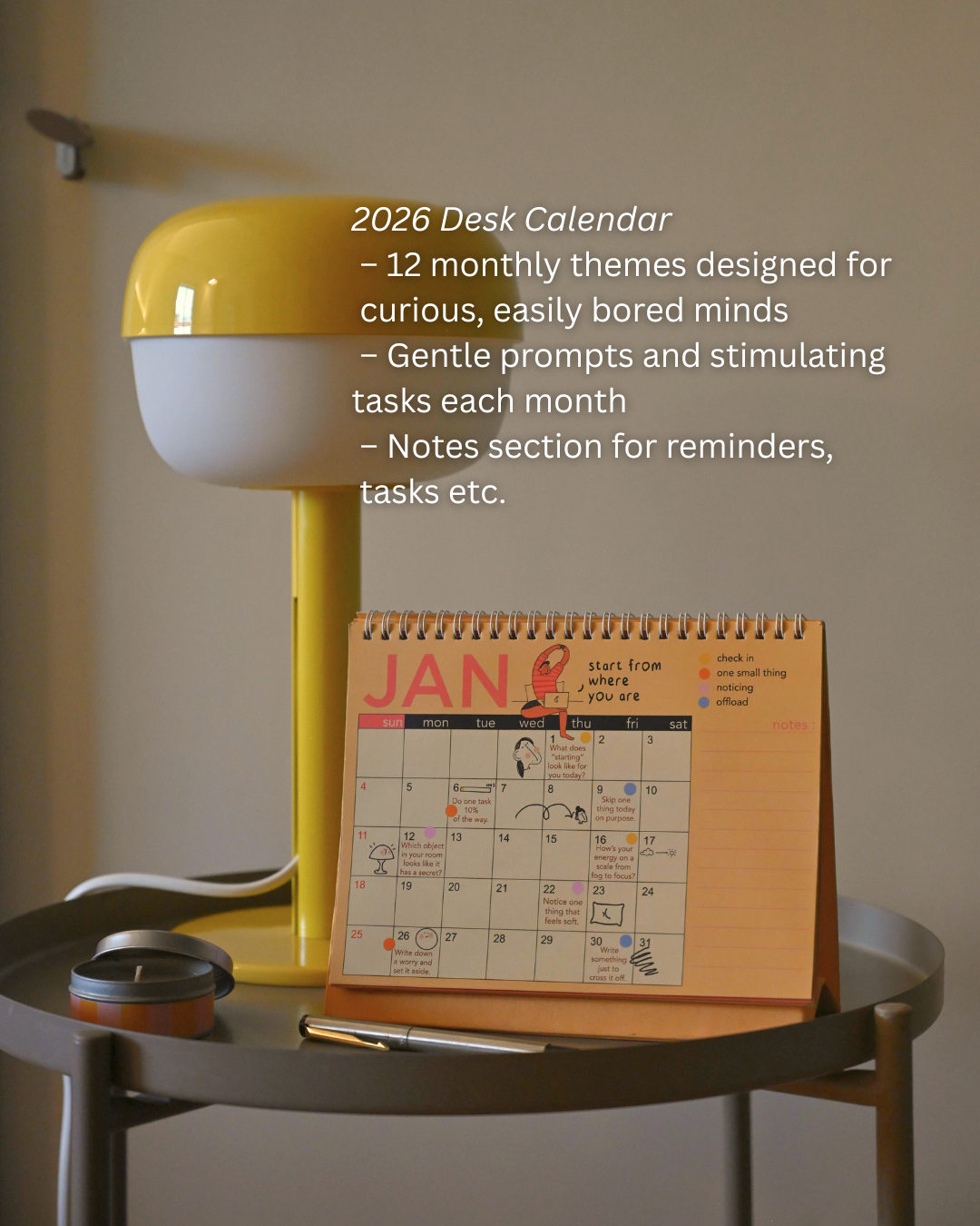 • Desk Calendar “One Day at a Time”: A 12-month guided calendar with prompts and themes that evolve each month.